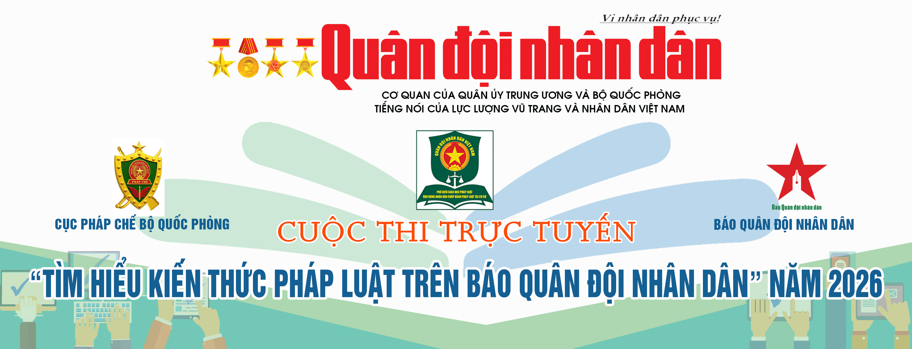 Thể lệ Cuộc thi trực tuyến “Tìm hiểu kiến thức pháp luật trên Báo Quân đội nhân dân” năm 2026. Đối tượng dự thi: Cán bộ, công chức, viên chức, người lao động, cán bộ, chiến sĩ trong lực lượng vũ trang nhân dân, học sinh, sinh viên và công dân nước Cộng hoà xã hội chủ nghĩa Việt Nam và người Việt Nam ở nước ngoài. Chi tiết thể lệ >>